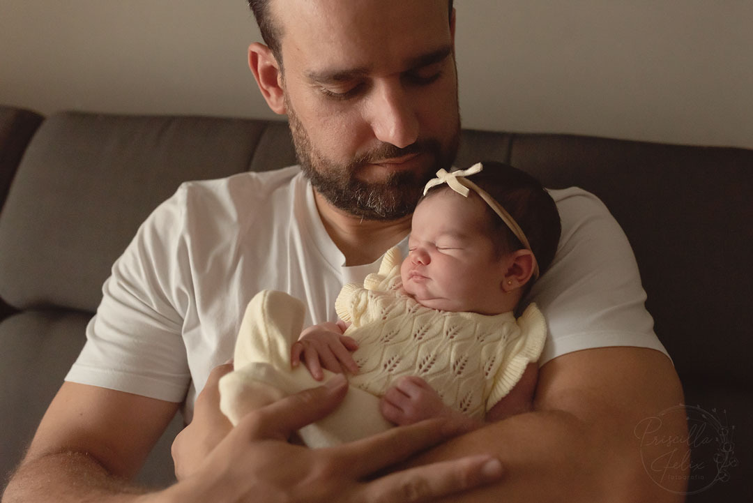 É um ensaio newborn onde eu posiciono o bebê para poder dar a graça e destacar a delicadeza do recém-nascido, usando os itens que tem na casa do cliente, usando as roupinhas do próprio bebê. Assim ficará fácil de relembrar daquela roupinha que seu bebê usou no primeiro dia de vida ou a saída da maternidade.