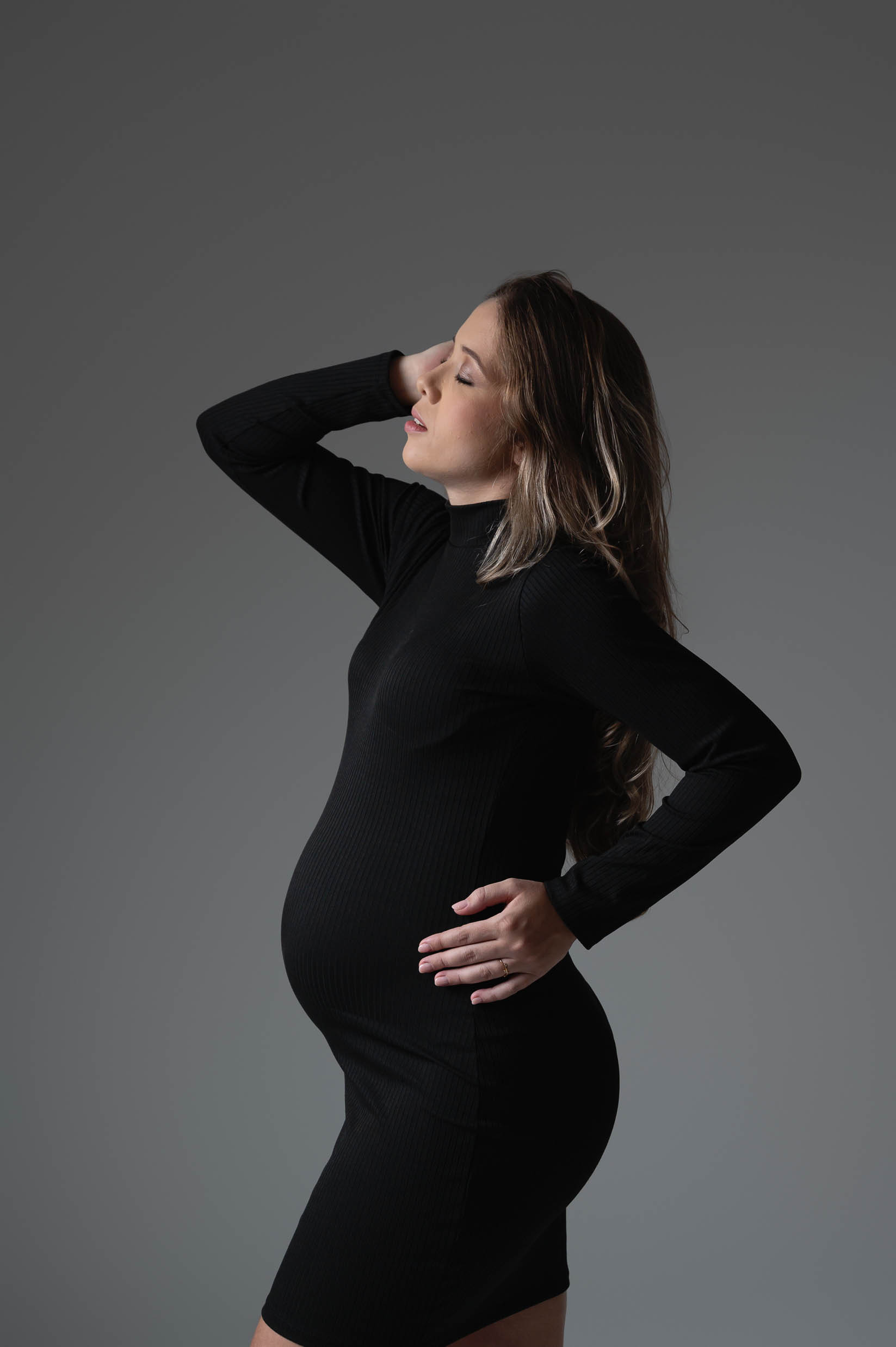 Na maioria das vezes, roupas mais simples criam imagens mais elegantes. Peças com poucos detalhes permitem que o olhar se concentre na forma da barriga, na expressão da gestante e na conexão com o bebê.